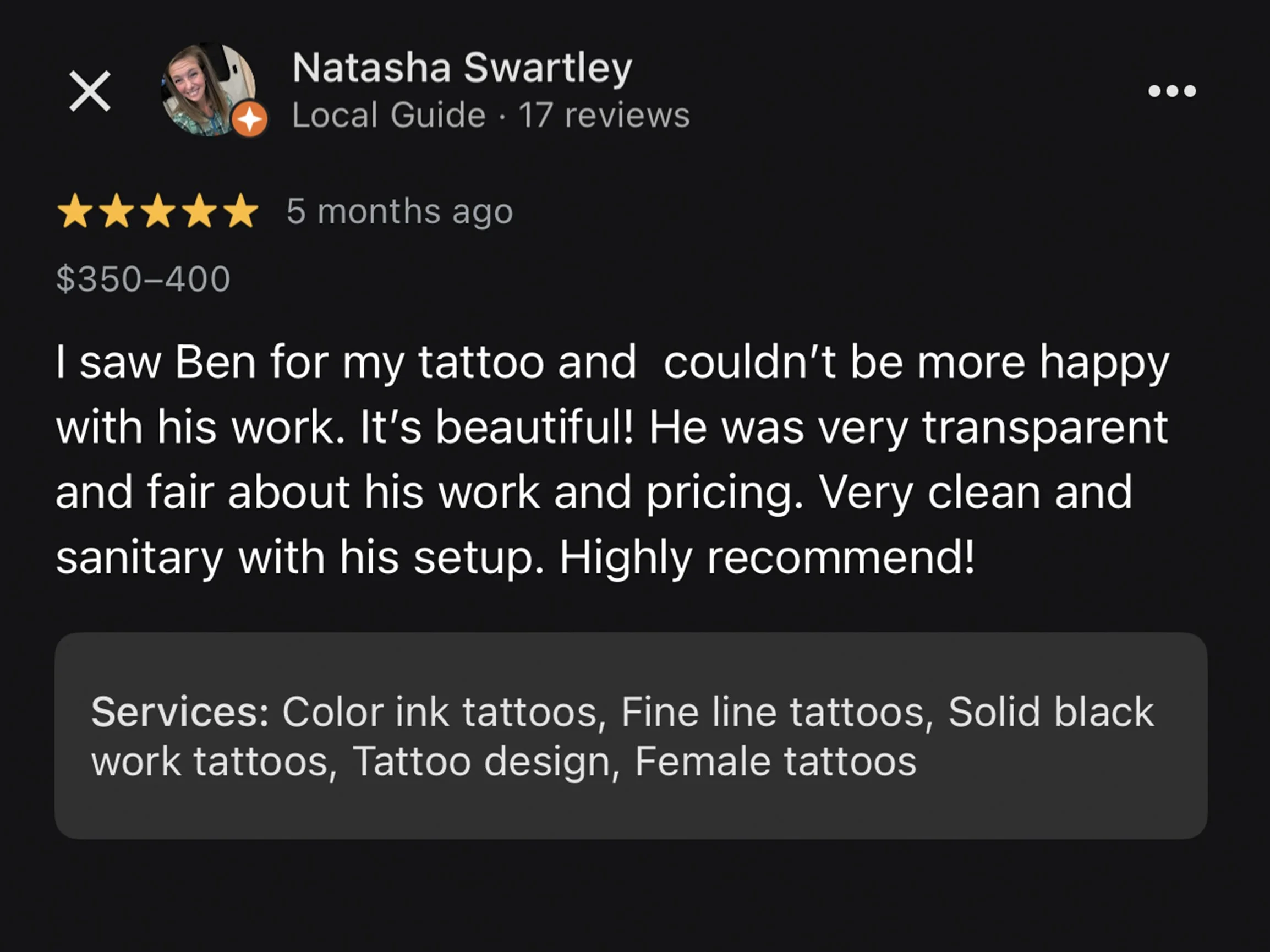 Ben Naiser expert professional tattoo artist in Colorado Springs, Colorado. Specializing in multiple styles of tattooing. Book a tattoo appointment or walk in to Lost Creek Tattoo today!